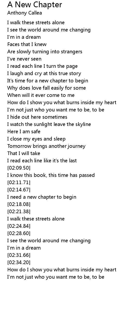 I need a new chapter to begin |