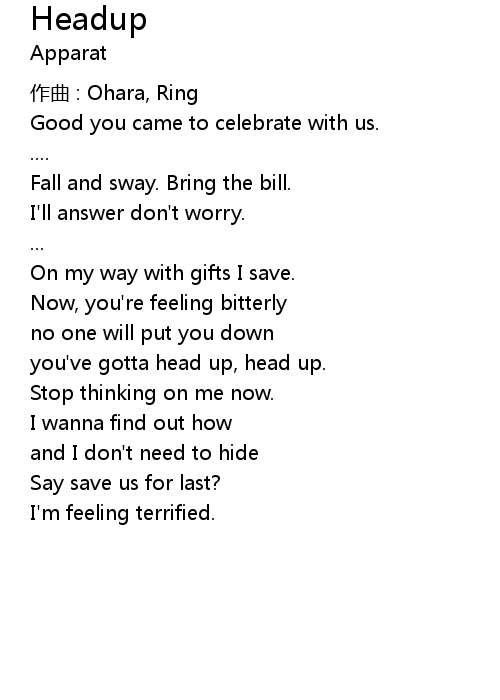| you've gotta head up, head up. | |