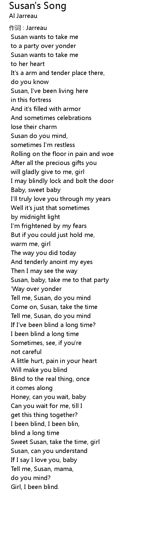 | Song | Susan's Song |