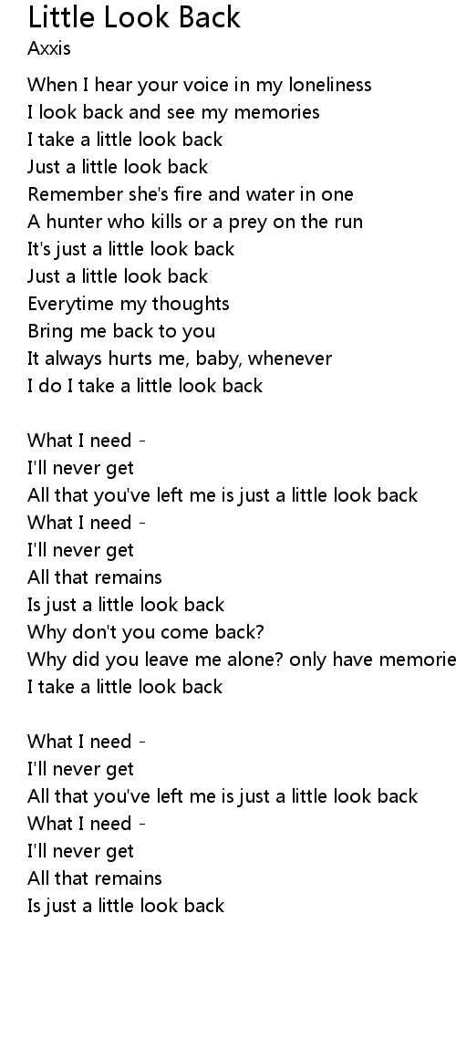 | All that you've left me is just a little look back | |