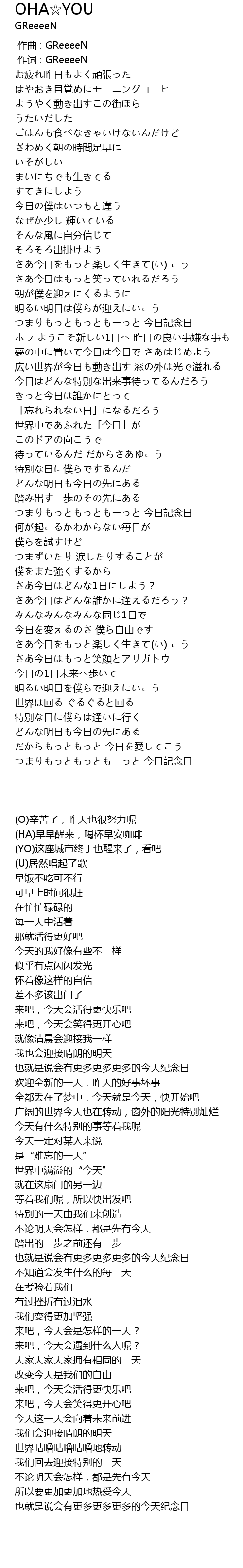 | [00:01.00] | zuò cí : GReeeeN |