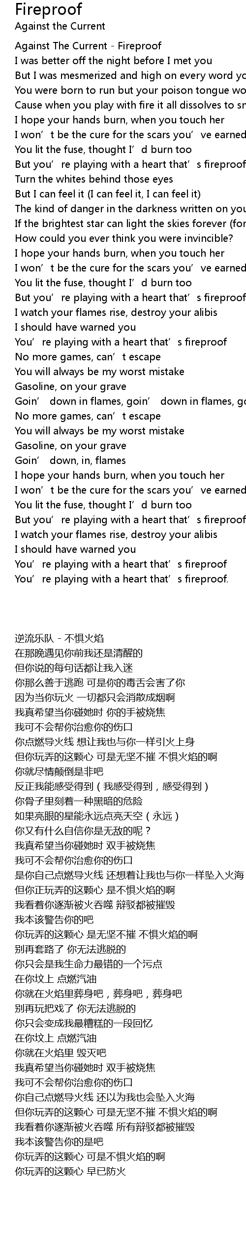 | [00:00.90] | Against The Current Fireproof |