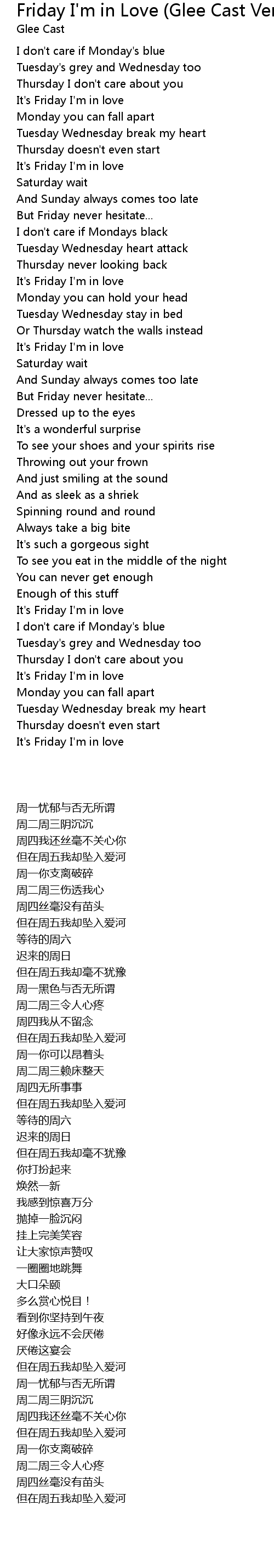Friday I'm in Love (Glee Cast Version) Lyrics