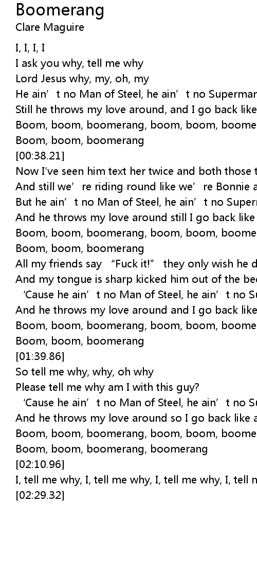 | [02:01.67] | Boom, boom, boomerang, boom, boom, boomerang |