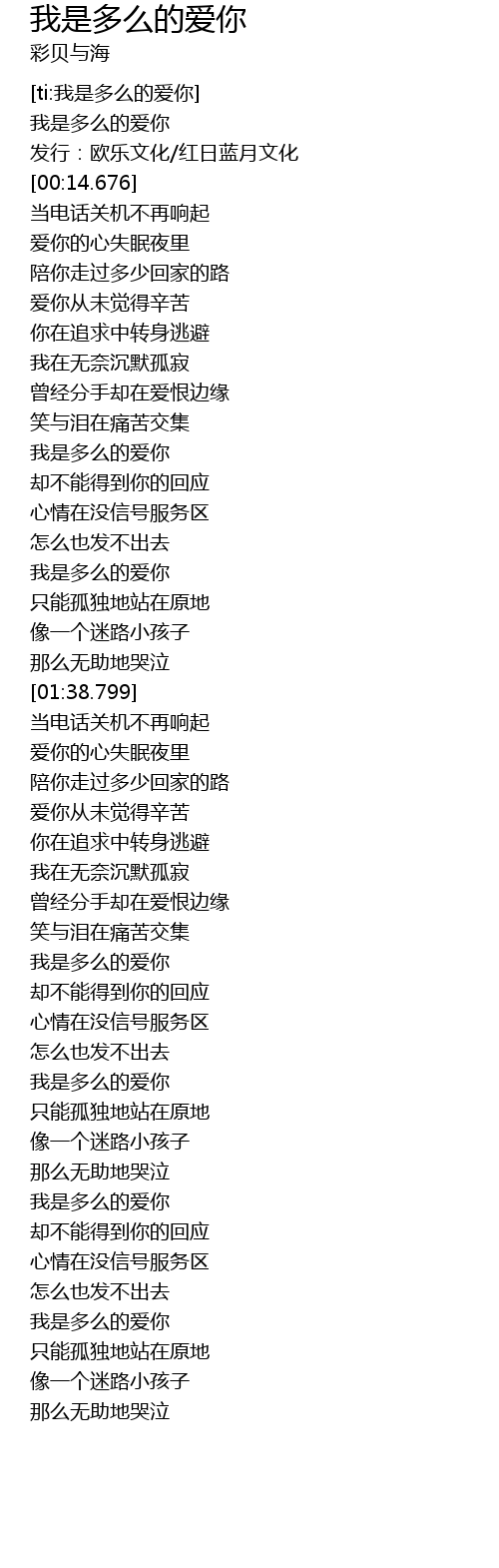| [01:21.683] | wǒ shì duō me de ài nǐ |