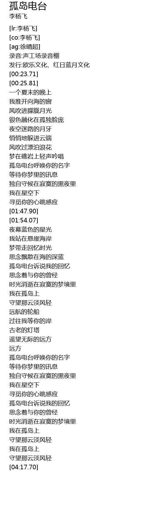 | [03:14.56] | 孤岛电台呼唤你的名字 |