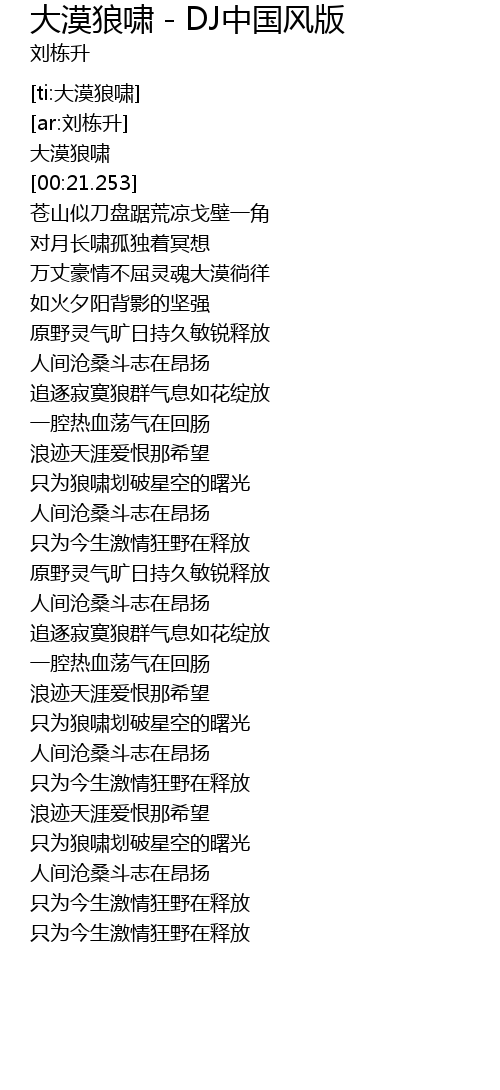 大漠狼啸 - DJ中国风版 da mo lang xiao  DJ zhong guo feng ban Lyrics