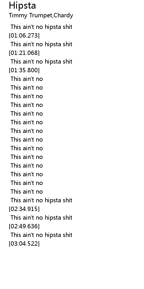 | [03:03.006] | This ain't no hipsta shit |