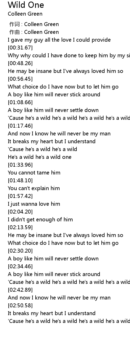 | [02:54.42] | 'Cause he's a wild he's a wild he's a wild he's a wild one |