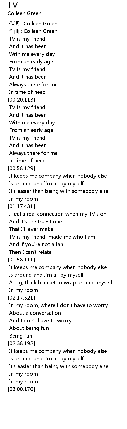 | [00:00.000] | zuò qǔ : Colleen Green |