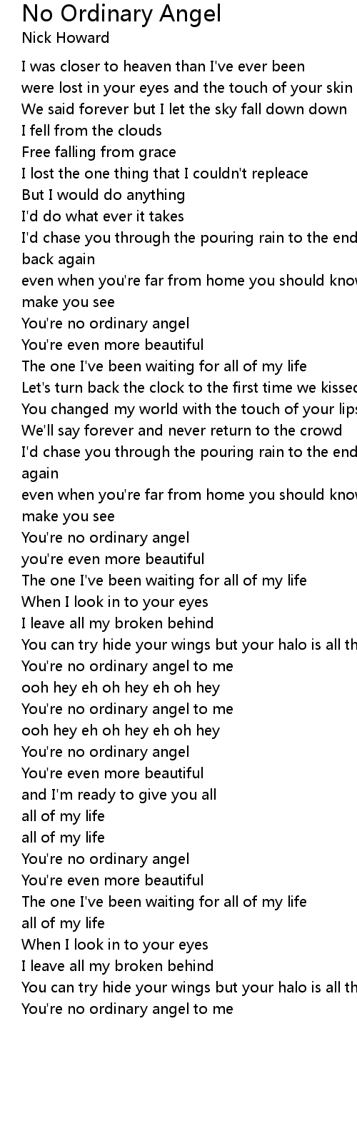 No Ordinary Angel Lyrics