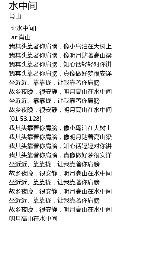 | [03:58.632] | 故乡夜晚,很安静,明月高山在水中间 |
