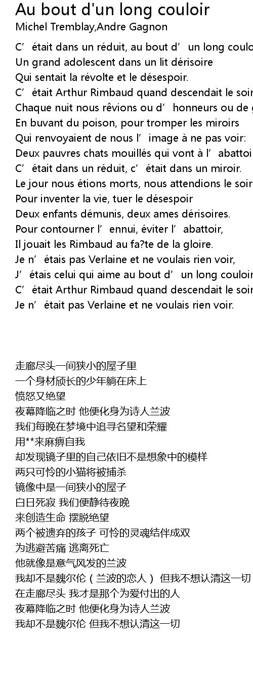 | Song | Au bout d'un long couloir |