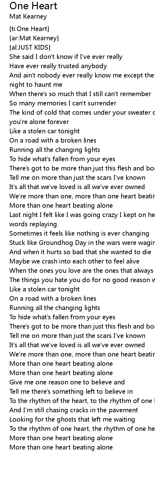 To the rhythm of one heart, the rhythm of one heart beating alone |