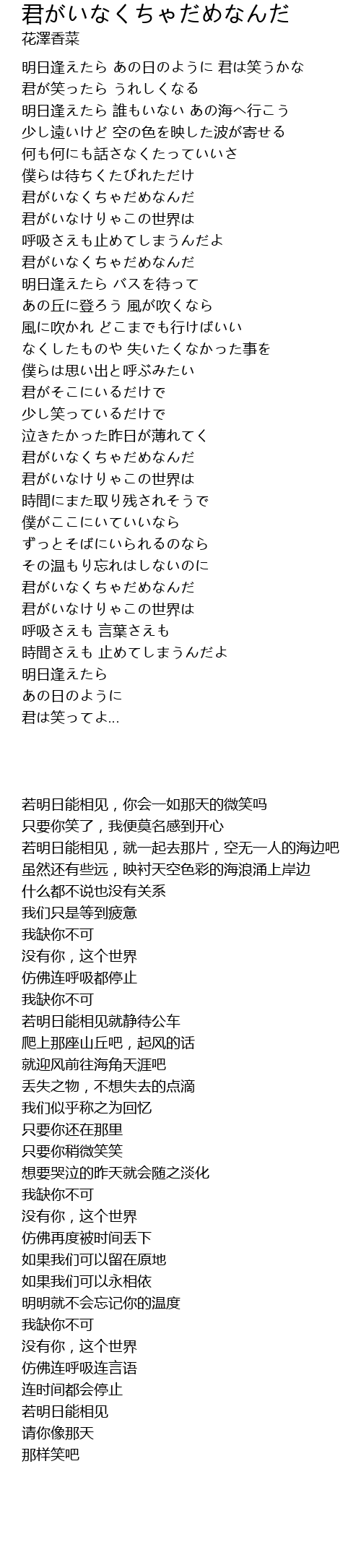 | [03:42.030] | 君がいなくちゃだめなんだ |