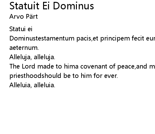 | Dominustestamentum pacis,et principem fecit eum;ut sit illisacerdotii dignitasin aeternum. | |