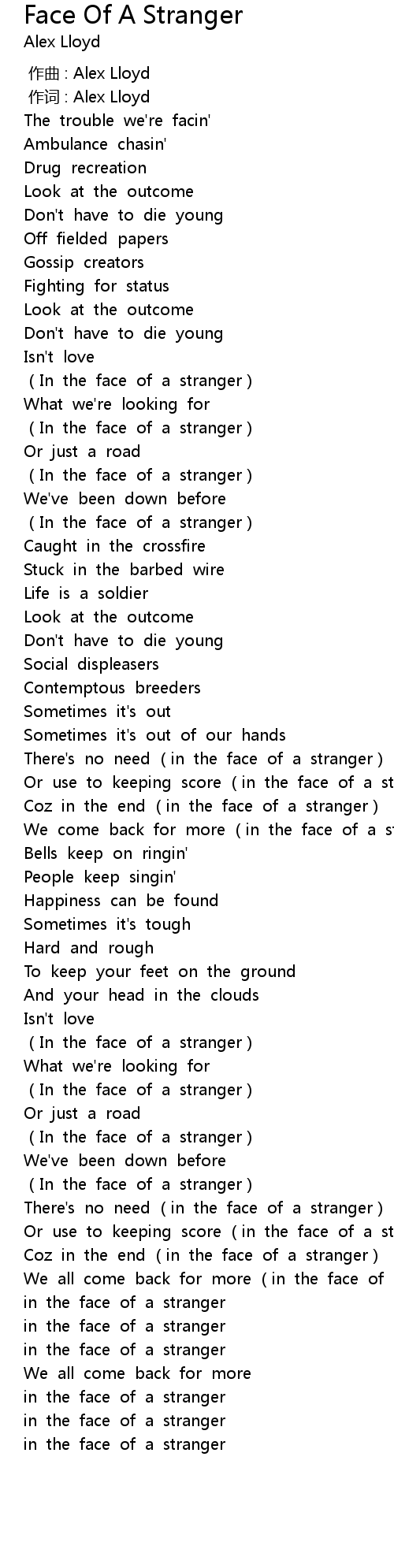 | [00:49.63] | In the face of a stranger |