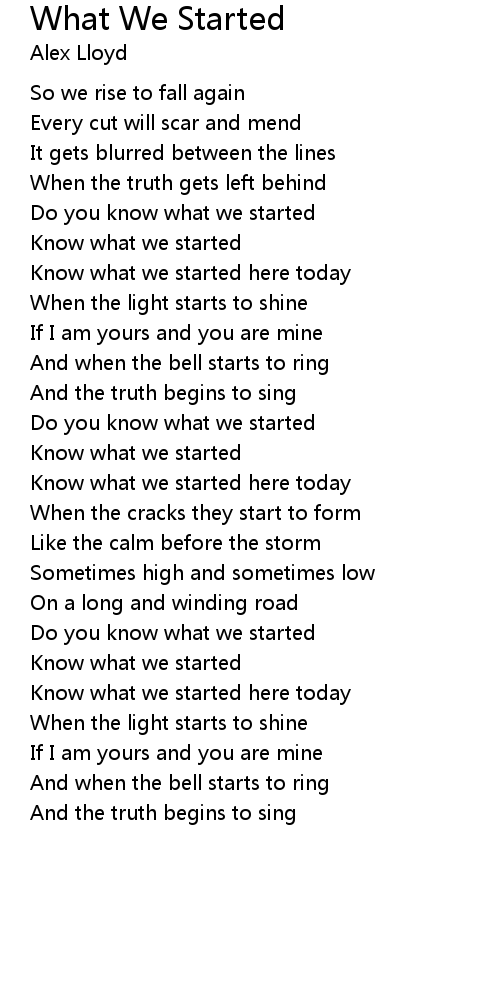 Do you know what we started |