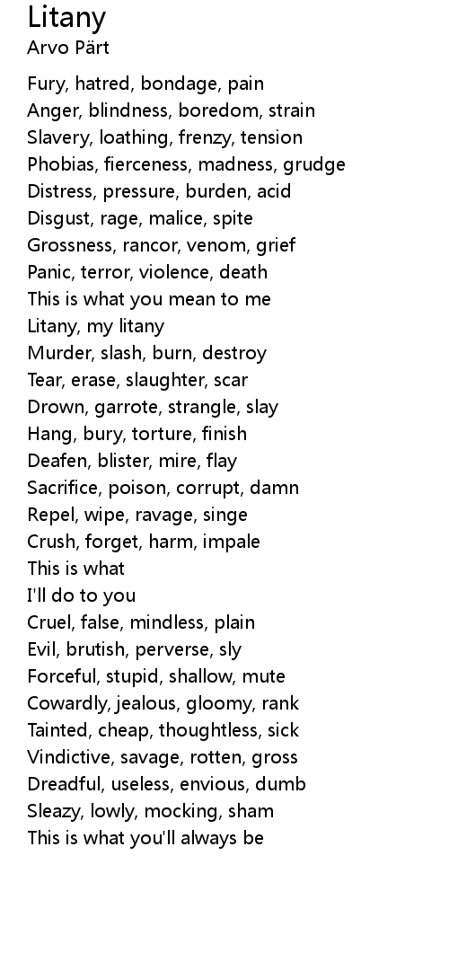 | Litany, my litany | |