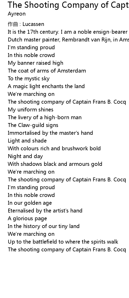 | Song | The Shooting Company of Captain Frans B. Cocq |