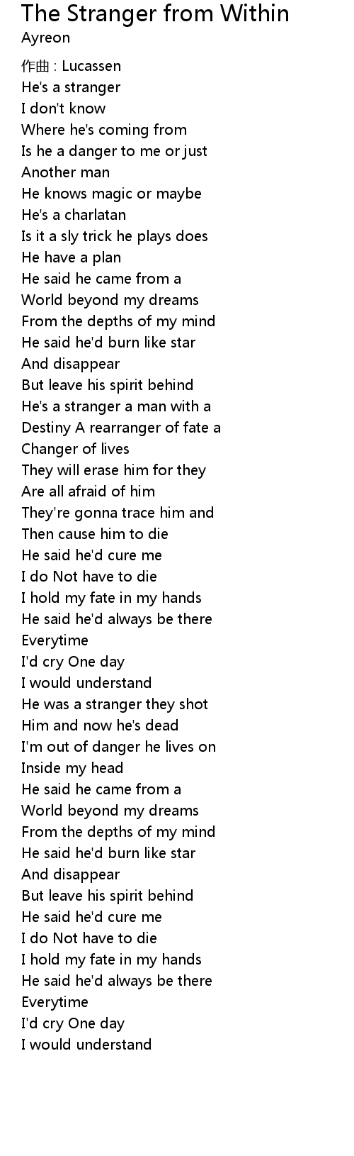 | Song | The Stranger from Within |