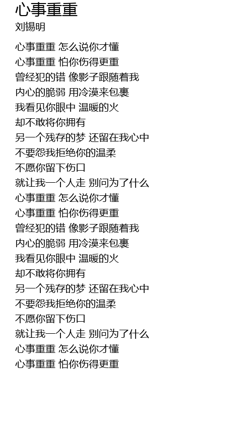 | [00:17.58] | 心事重重 怎么说你才懂 |