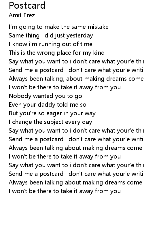 | Send me a postcard i don't care what your'e writing | |