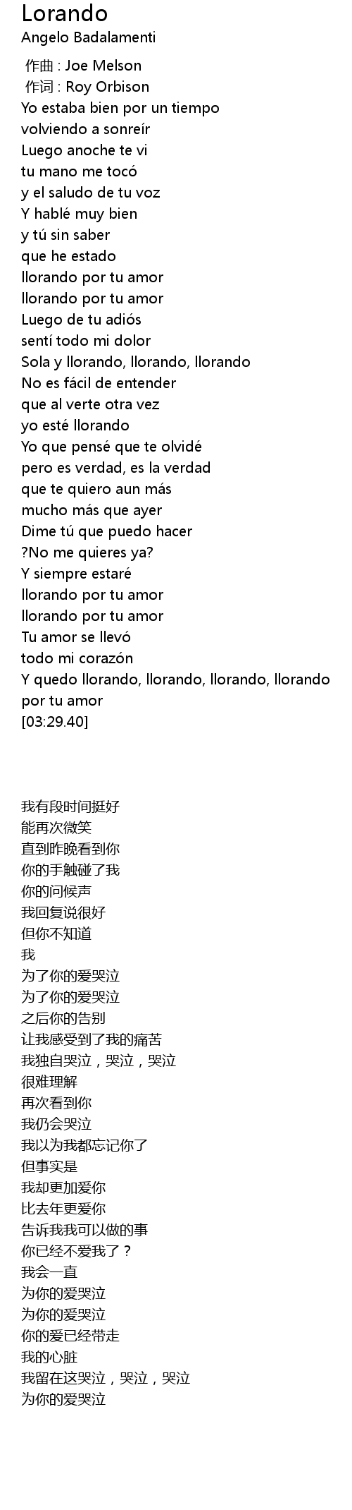 | [00:00.22] | zuò cí : Roy Orbison |