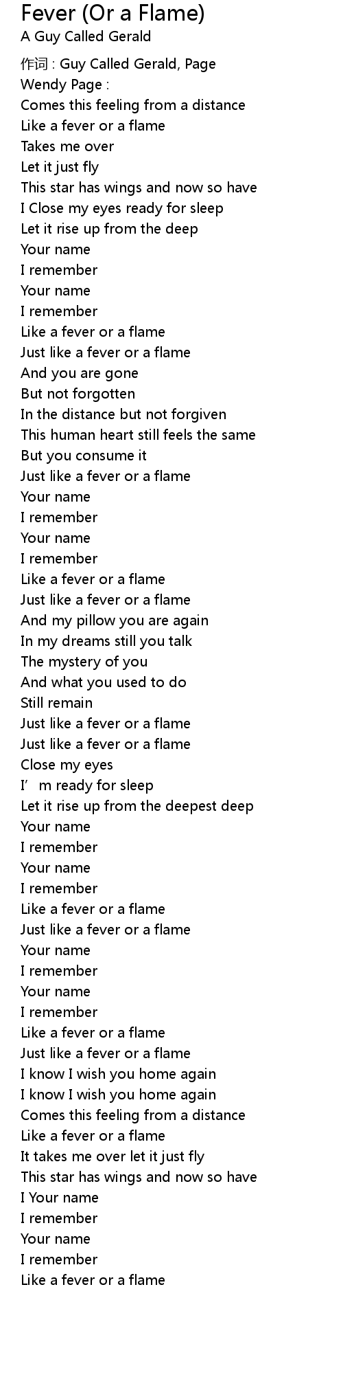 | Like a fever or a flame |