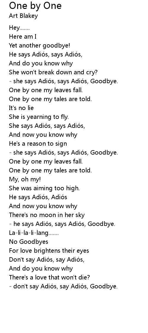 | - she says Adiós, says Adiós, Goodbye. | |
