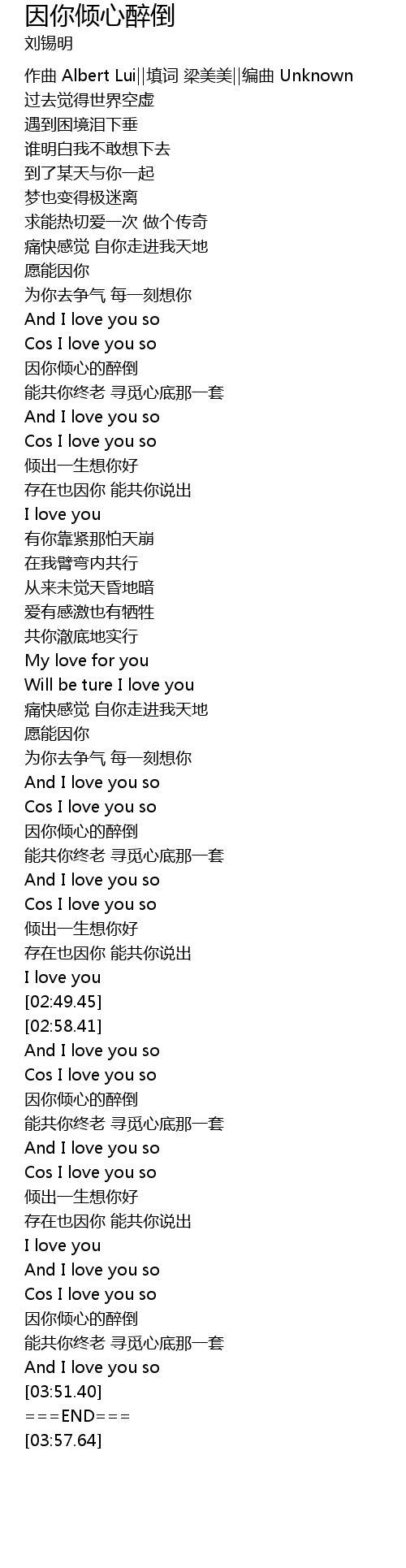 | [03:38.62] | yīn nǐ qīng xīn de zuì dào |