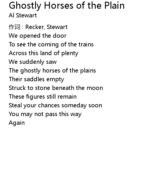 | Song | Ghostly Horses of the Plain |