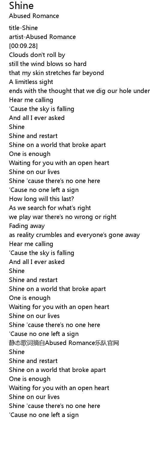 | [02:20.16] | 静态歌词摘自Abused Romance乐队官网 |