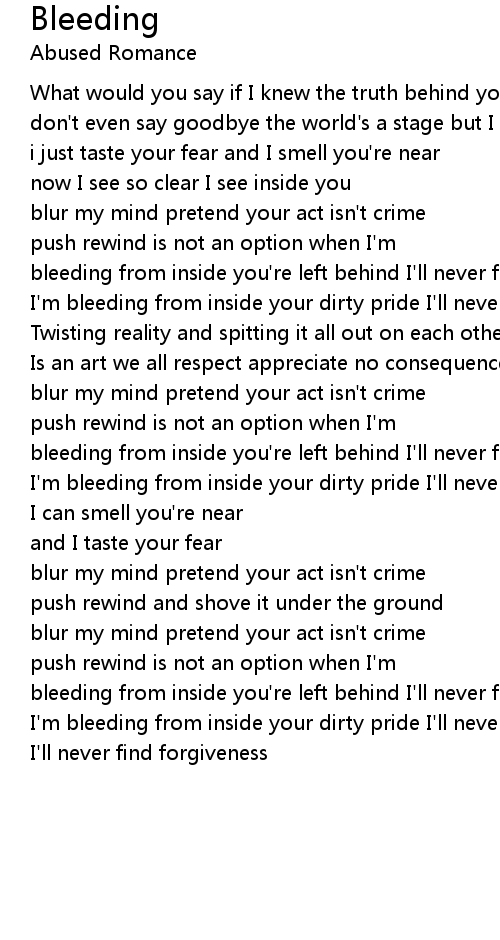 bleeding from inside you're left behind I'll never find forgiveness |