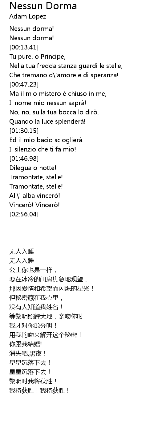 | [00:33.28] | Che tremano d\'amore e di speranza! |