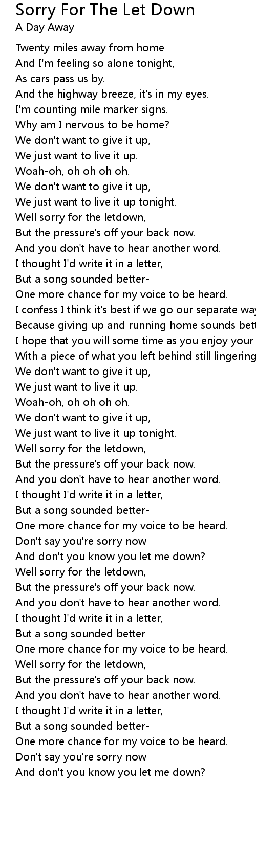 And don't you know you let me down? |