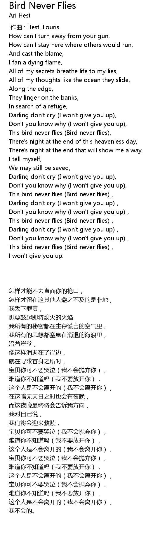 | [02:49.96] | This bird never flies (Bird never flies), |