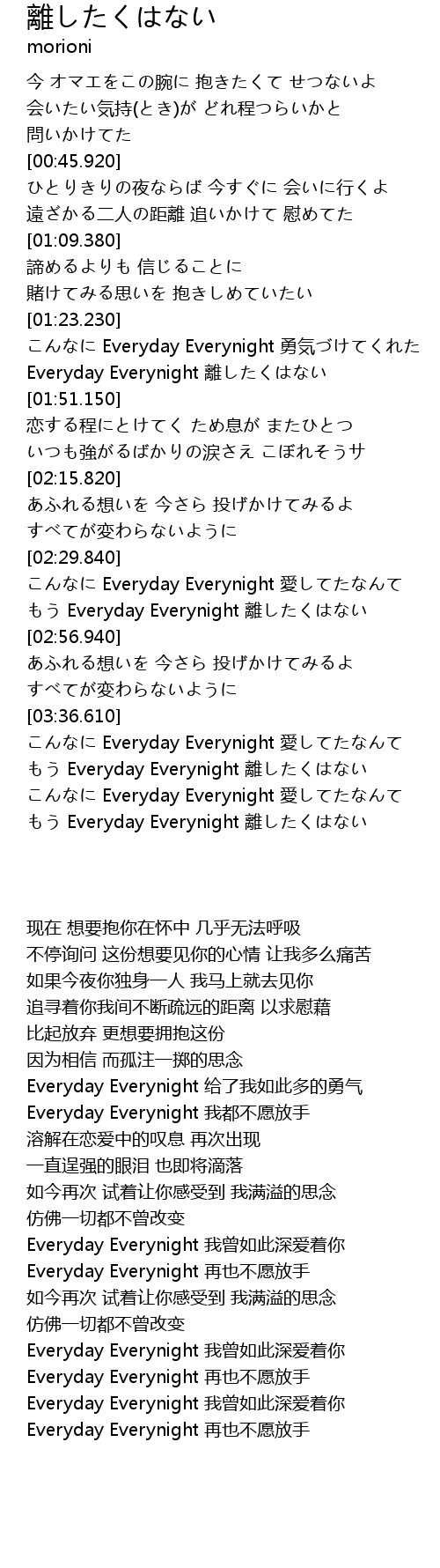 | [01:38.120] | Everyday Everynight 離したくはない |
