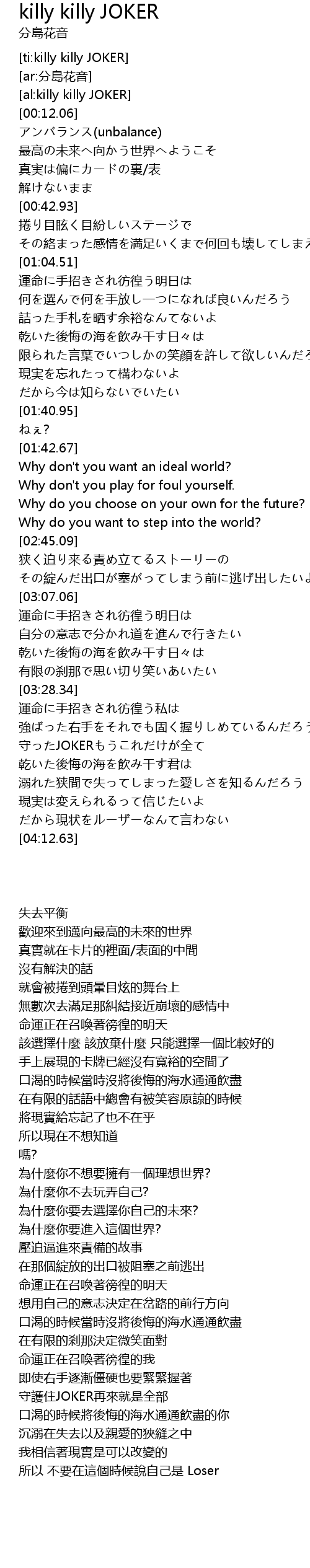 | [03:39.93] | 守ったJOKERもうこれだけが全て |