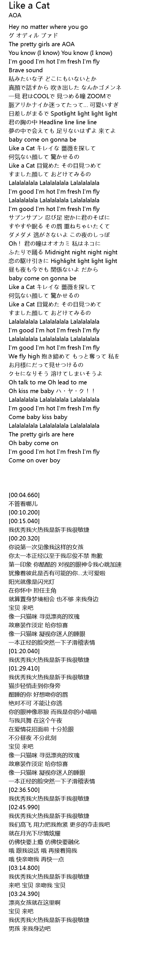 | [00:10.200] | The pretty girls are AOA |