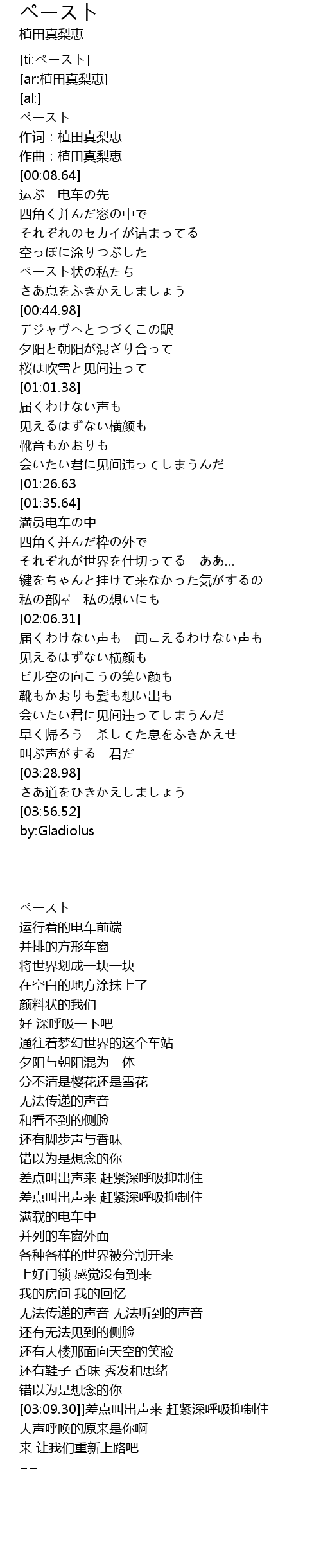| [03:58.86] | by:Gladiolus |