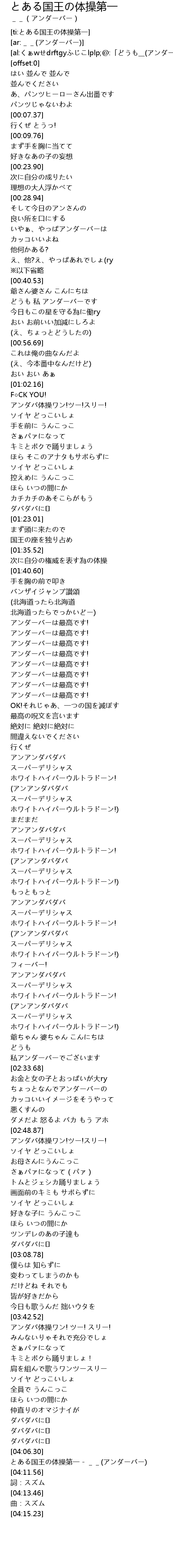 | [01:03.61] | アンダバ体操ワン!ツー!スリー! |