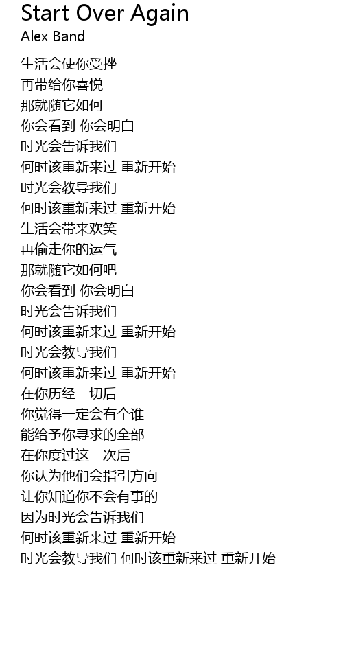 | [03:47.42] | 时光会教导我们 何时该重新来过 重新开始 |