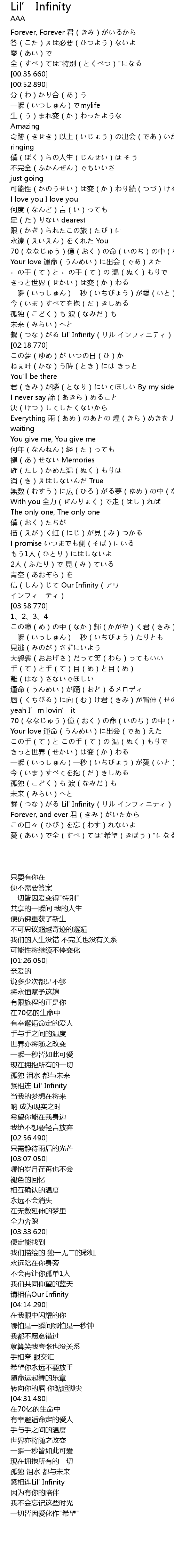 | [05:00.660] | 繋(つな)がる Lil' Infinity(リル インフィニティ) |