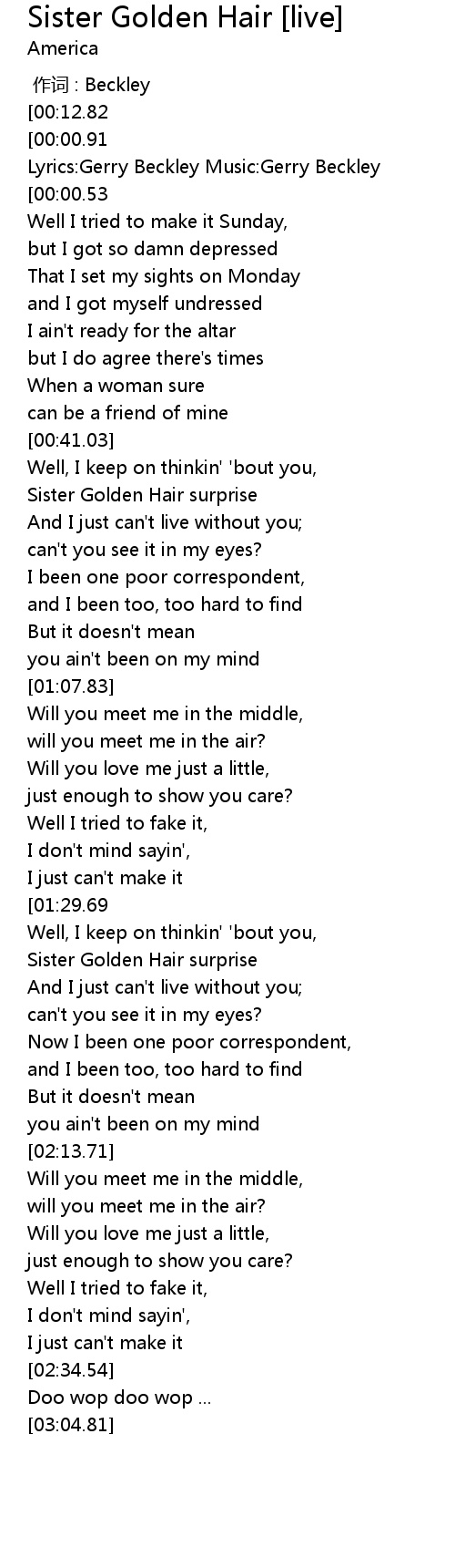 | [01:50.76] | Sister Golden Hair surprise |