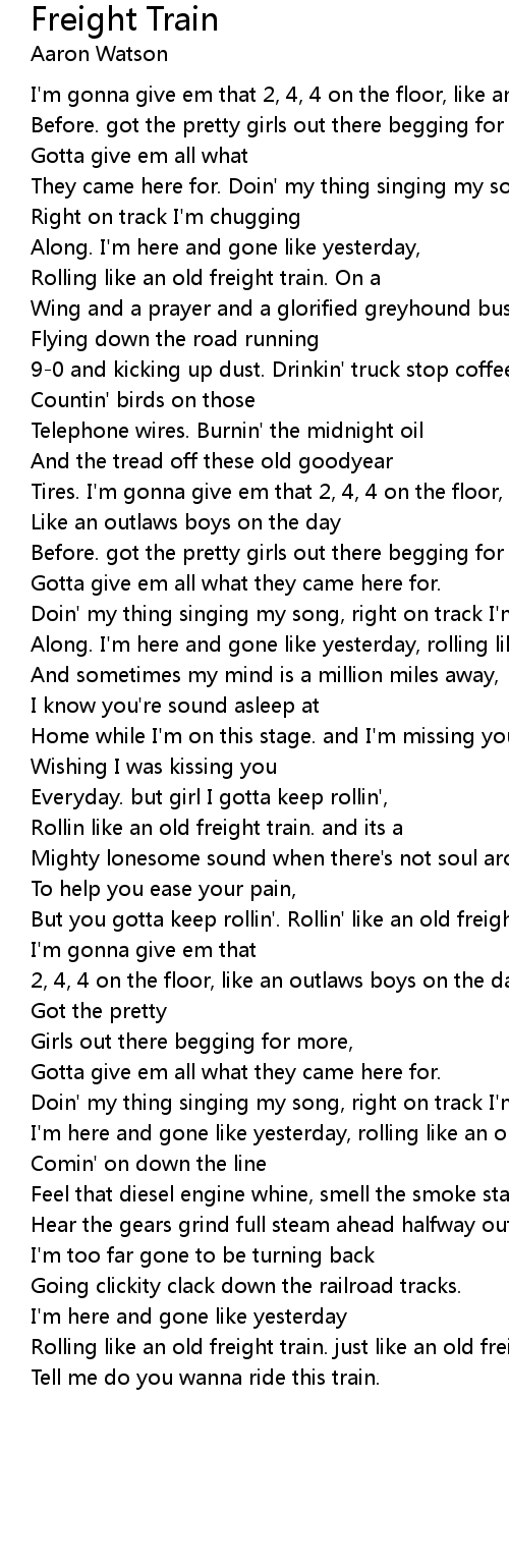 Along. I'm here and gone like yesterday, rolling like an old freight train. |