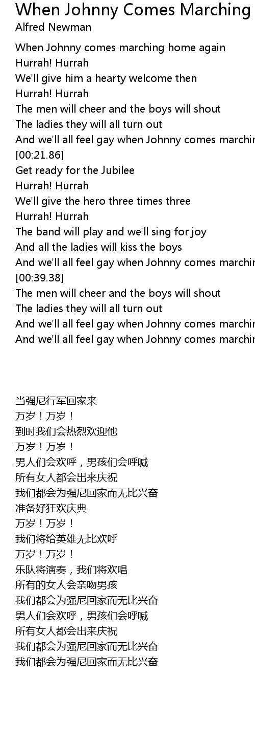 [00:04.04] When Johnny comes marching home again
