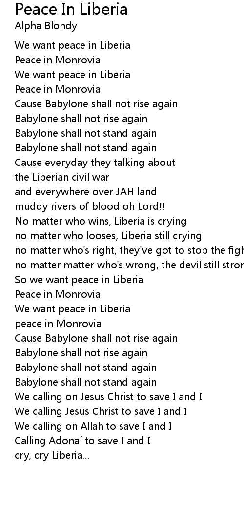 | Song | Peace In Liberia |