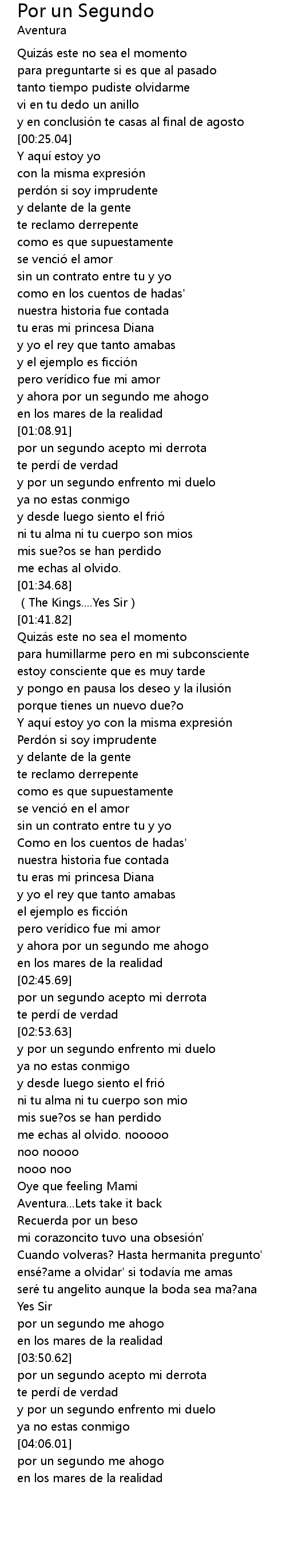 | [03:38.79] | seré tu angelito aunque la boda sea ma?ana |