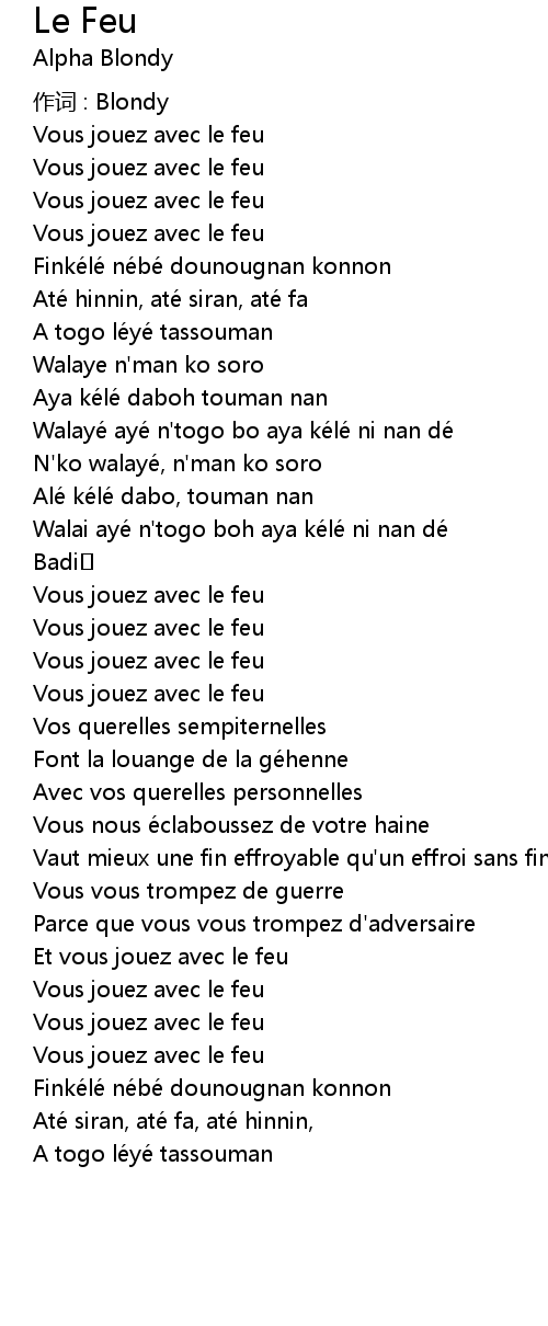 | Walayé ayé n'togo bo aya kélé ni nan dé | |